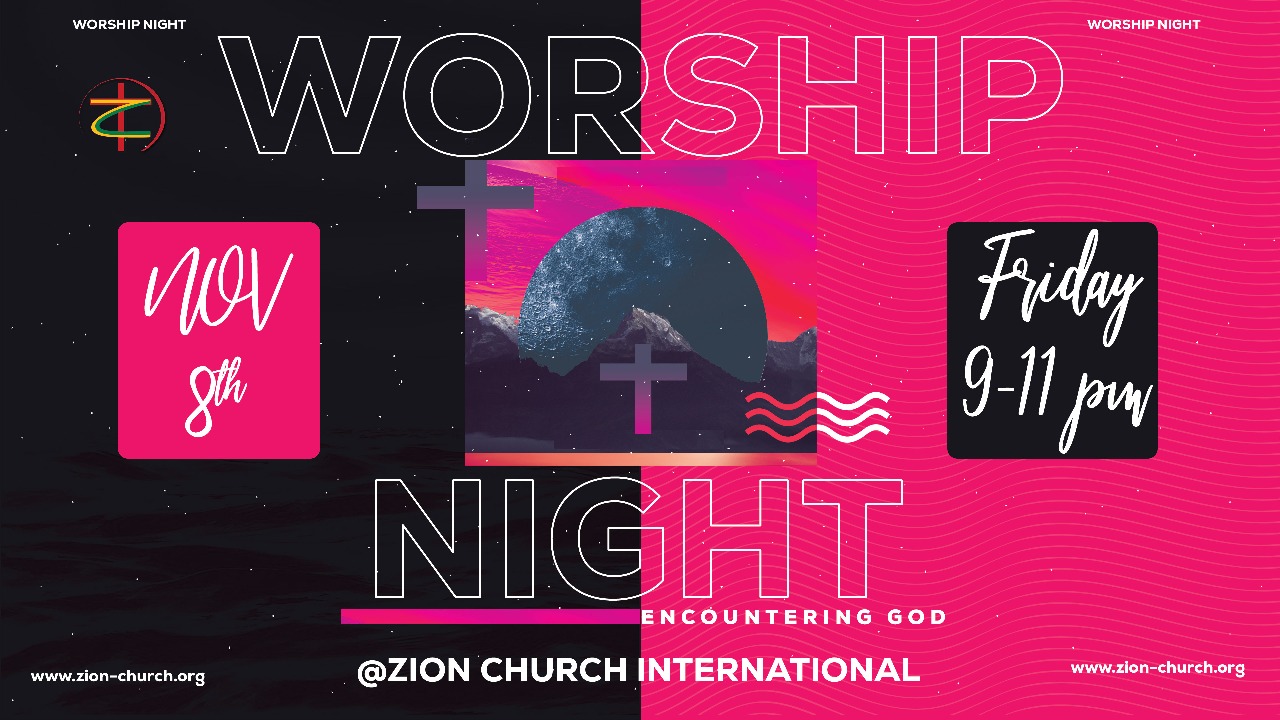 Worship Night! November 8, 2024 9:00 pm – 11:00 pm Zion Church International 15724 Crabbs Branch Way, Derwood, MD 20855 Get Directions